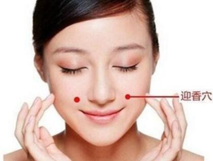 按迎香穴:将两手拇指外侧相互摩擦,有热感后,用拇指外侧沿鼻梁、鼻翼两侧上下按摩60次左右,然后,按摩鼻翼两侧的迎香穴20次。
