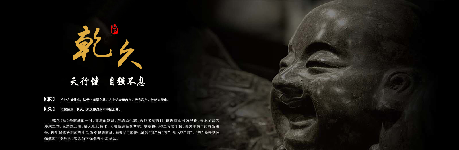 乾久秘方来自民间,珍于宫廷,亦回归于民间。乾隆御医张公照进之后人张友平先生,据先辈亲传清宫秘方结合自身几十年潜心研制之成果,调和阴阳、平衡五行、斟酌七情、配伍成方。取五大连池上亿年之岩溢水酿五粮琼浆、选野生之材、遵古训秘制,分类浸提,勾兑窖藏成就今日之“乾久”。并经现代高科技技术与现代医药相结合,研制出当下市场上男女皆宜、备受推崇的“乾久”品牌。由于乾久主要原材料均产自高寒之地,每年只能产出一次,产量有限,故也显得弥足珍贵。